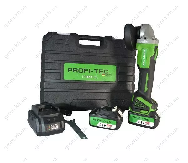 Аккумуляторная угловая шлифмашина PROFI-TEC FS21BL (комплект 2*5,0Ah и зарядное устройство)