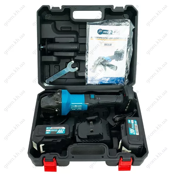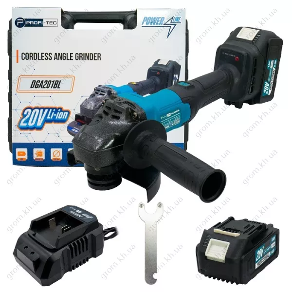 Аккумуляторная угловая шлифовальная машина PROFI-TEC DGA201BL POWERLine (2×PT2040EP (4.0 Ач), зарядное устройство)