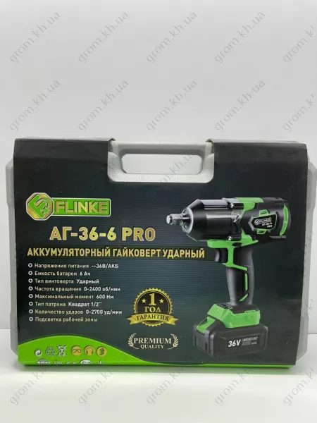 Этот инструмент, работающий в ударном режиме, создан для того, чтобы сделать ваши задачи по креплению эффективными и точными. Питание от перезаряжаемой батареи обеспечивает свободу передвижения без ограничений, связанных с проводами. Аккумуляторный гайковерт ударный Flinke АГ-36-6 PRO с 12-месячной гарантией станет надежной инвестицией в ваш набор инструментов.