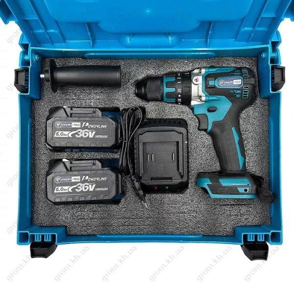 Аккумуляторный шуруповерт PROFI-TEC DHP485BL POWERLine (2 х 5.0 Ач, зарядное устройство, кейс)