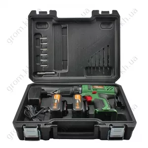 - Подсветка рабочей зоны, Индикатор заряда батареи, Прорезиненная рукоятка, Одномуфтовый зажимной патрон, Металлические планетарная шестерня и сателлиты