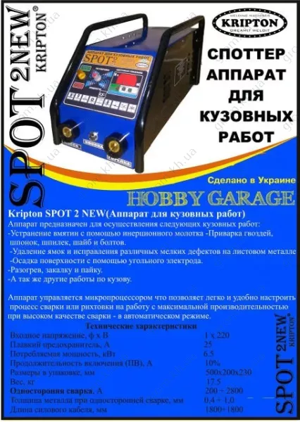 Характеристики Аппарат для кузовных работ Споттер Kripton SPOT 2 new (220В)