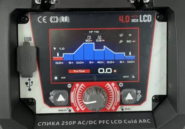 Характеристики Аргонодуговый инвертор сварочный СПИКА GTAW 250P AC/DC PFC LCD Cold Arc с водяным охлаждением