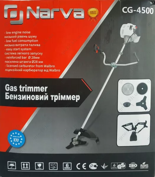 Бензиновая коса Narva CG-4500 позволит вам ухаживать за отдаленными участками сада или парка. Его можно использовать даже в тех населенных пунктах, где нет электрификации.