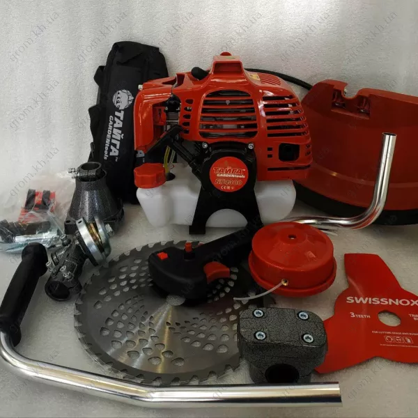 - Бензокоса, нож 2-х зубовый, нож 3-х зубовый, нож 40т победит, катушка с леской, катушка-паук