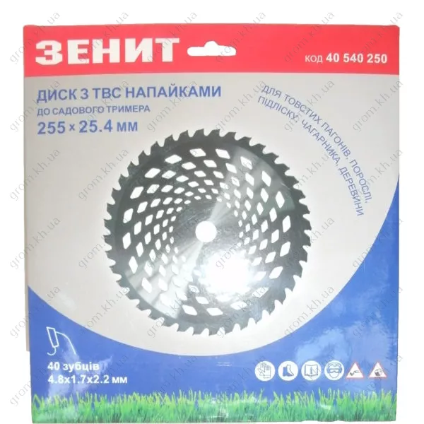 Диск для садового триммера Зенит 255х25.4 мм 40 ТВС зубцов
