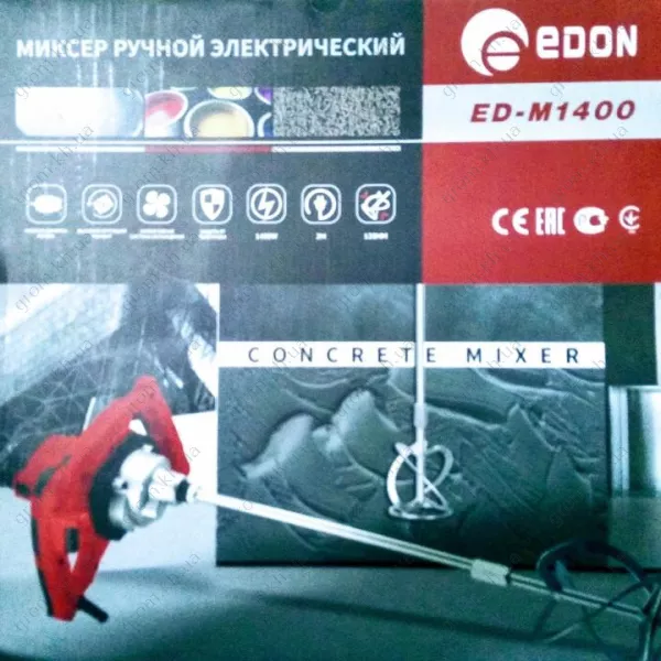 Дрель-миксер Edon ED-M1400 – легкая техника для ремонта и строительства. Может использоваться для высверливания отверстий в бетоне и дереве, приготовления различных смесей (включая раствор для бетонной стяжки, строительный клей и тому подобные вещества).