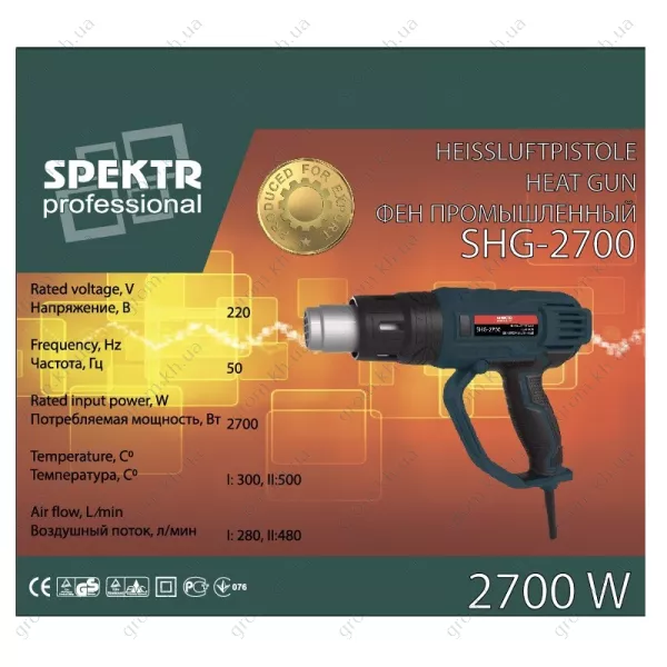 Характеристики Фен технический Spektr SHG-2700 (Регулировка мощности,набор насадок, Болгария)