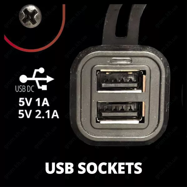 - 2 шт. 230 В / 2 шт. USB 5V - 1A/2,1 A / 1 шт. 12 В