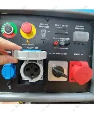 • 1x230 В 63A 3p, 1x400 V 32A 5p, розетка 12VDC, выключатель нагрузки, термозащита, аварийный выключатель и зарядное устройство