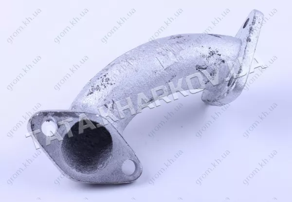 Колено глушителя - 180N подходит на дизельные двигатели мотоблоков и мототракторов мощностью 7/8 л.с. с водяным охлаждением. Материал - чугун. Общая длина (мм) - 170 Межболтовый размер: 2 болта (мм) - 54 3 болта (мм) - 47 Вес (гр.) - 370