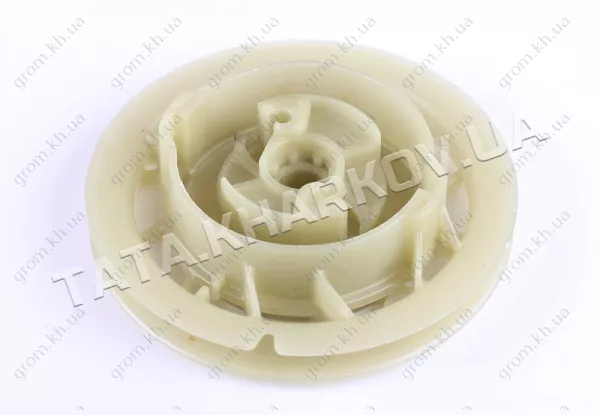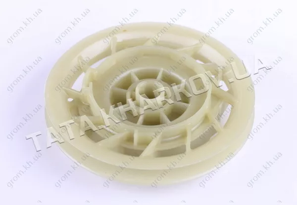 Колесо ручного стартера - 156F. подходит к бензиновым двигателям культиваторов и другой минисельхозтехники. Материал - пластик Диаметр наружный (мм) - 128 Вес (гр.) - 75