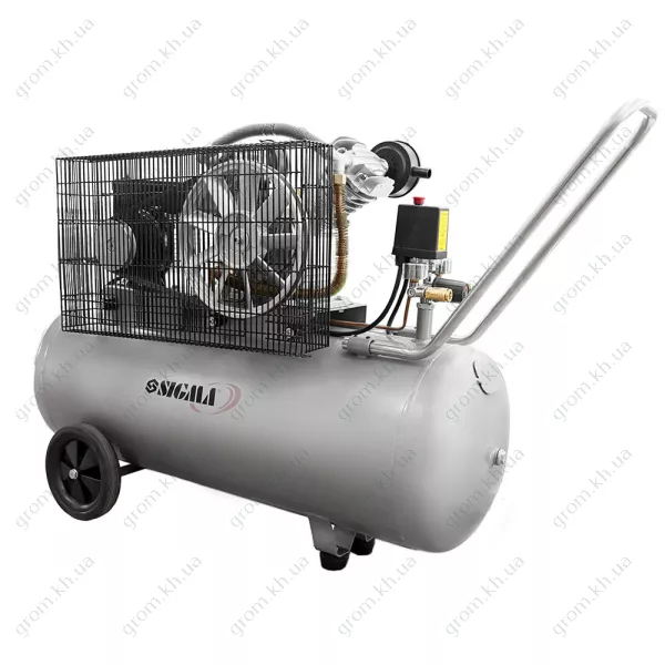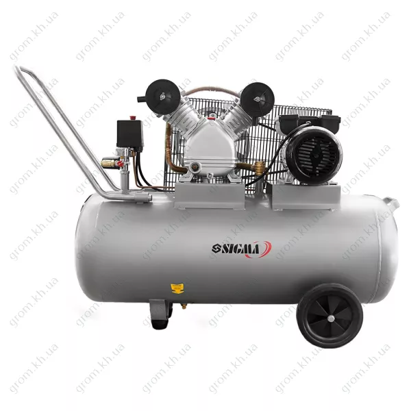 Компрессор двухцилиндровый ременной SIGMA 2.5кВт 396л/мин 10бар 100л (2 крана)