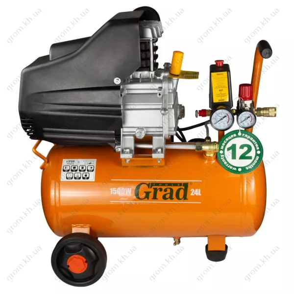 Компрессор одноцилиндровый GRAD 1.5кВт 198л/мин 8бар 24л (2 крана)