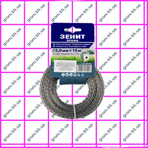Леска для садовых триммеров Зенит «Двойная с кордом» 2,7 мм × 15 м (КР2-27-15-КВ) Профи