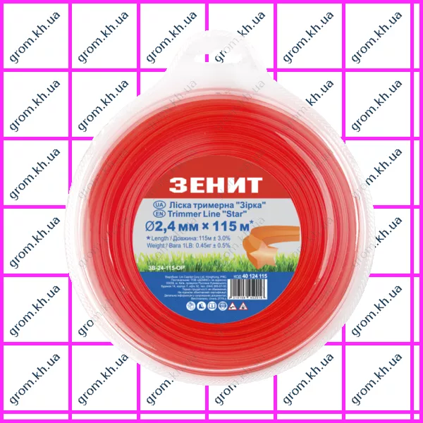 Характеристики Леска для садовых триммеров Зенит «Звезда» 2,4 мм × 115 м (3В-24-115-ОР)