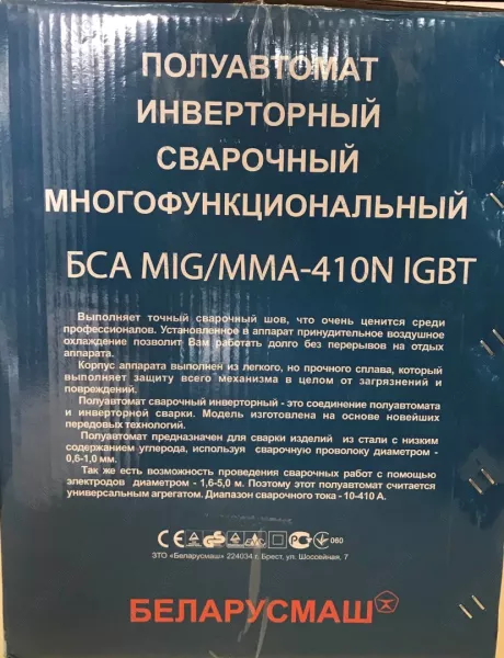 Характеристики Многофункциональный инверторный сварочный полуавтомат Беларусмаш БСА MIG/MMA-410N IGBT