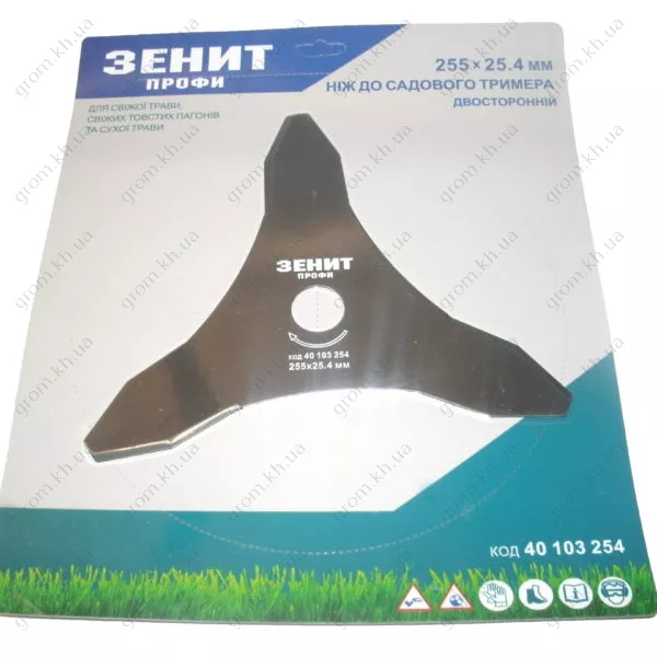 Нож для садового триммера Зенит 255х25.4 мм 3-лопастной двухсторонний Профи
