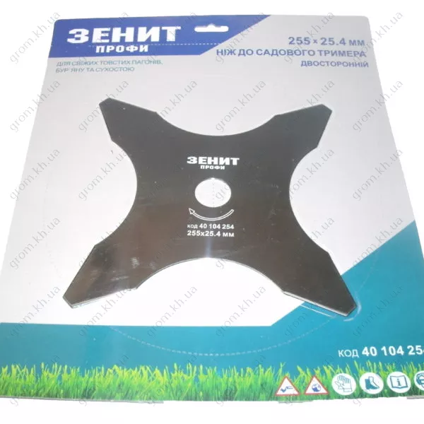 Нож для садового триммера Зенит 255х25.4 мм 4-лопастной двухсторонний Профи