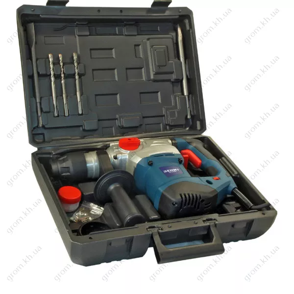 - Регулировка частоты вращения; Антивибрационная система; Предохранительная муфта; Износостойкие шестерни редуктора; Переключатель направления вращения (реверс); Фиксатор кнопки пуск; Система крепления инструмента SDS-plus; 3 Режима работы; Ограничитель глубины сверления; Поворотная дополнительная рукоятка; Пластиковый кейс для хранения и транспортировки.