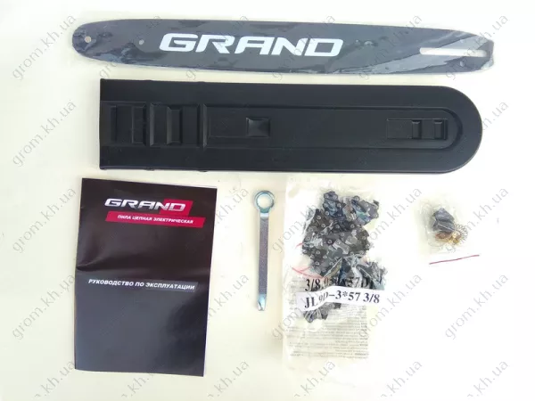 • Гарантийный талон, Защитный кожух, Инструкция по эксплуатации, Картонная упаковка, Комплект для сборки, Цепь, Шина