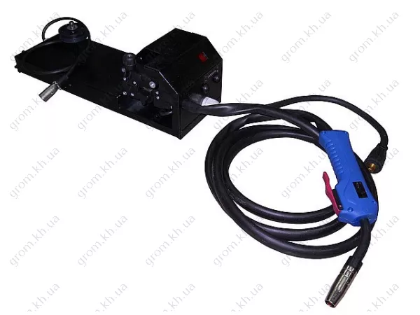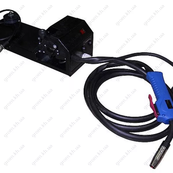 Подающее устройство для полуавтоматической сварки создано исключительно для того, чтобы совместно работать с инвертором. Изделие фиксируется на коробке сварочного устройства при помощи специального XLR- разъёма, который предусмотрен в комплекте с подающим механизмом. Механизм вписывается в схему, позволяя подающему устройству регулировать направление сварочной установки. Он имеет обширный спектр действия и стабилизацию скорости подачи, цифровую установку, высокое допустимое напряжение питания, а подача происходит от источника сварочной дуги. Выключение сварочного тока осуществляется управлением силовой платы, это помогает продлить срок эксплуатации инструмента. Для удобства в работе предусмотрена быстрая подмотка при заправке проволоки с остановкой подачи газа.