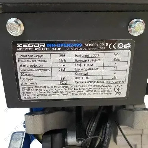 Характеристики Профессиональный бензиновый генератор инверторного типа ZEGOR DIN-OPEN 2499: 2.3/2.5кВт, медная обмотка