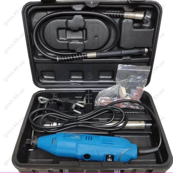 • гибкий вал, комплект насадок — 42 шт., пластиковый кейс, стойка