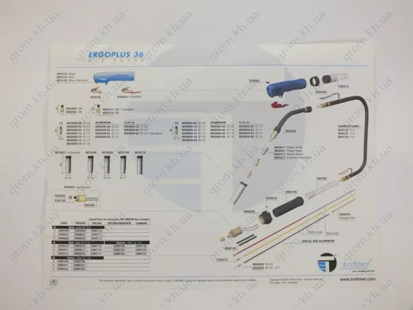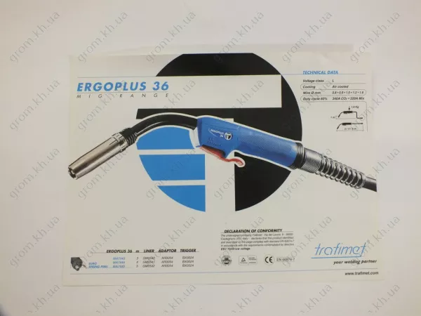 Характеристики Сварочная горелка MIG/MAG Trafimet ( Италия ) ERGOPLUS 36, 3 метра