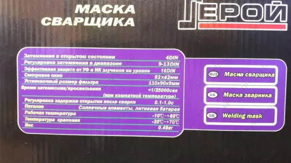 Характеристики Сварочная маска Гладиатор ASTRO 700 D