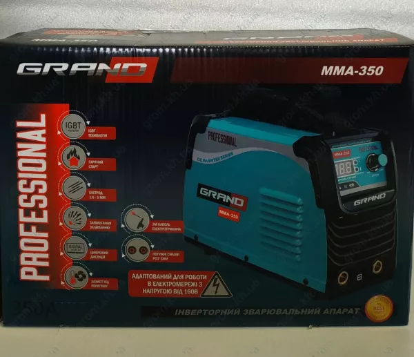 Сварочный инвертор Grand ММА-350 Prof – современный профессиональный аппарат для выполнения работ с металлическими заготовками в домашних и производственных условиях. Представленное оборудование имеет такие технические характеристики, позволяющие использовать его для различных задач: