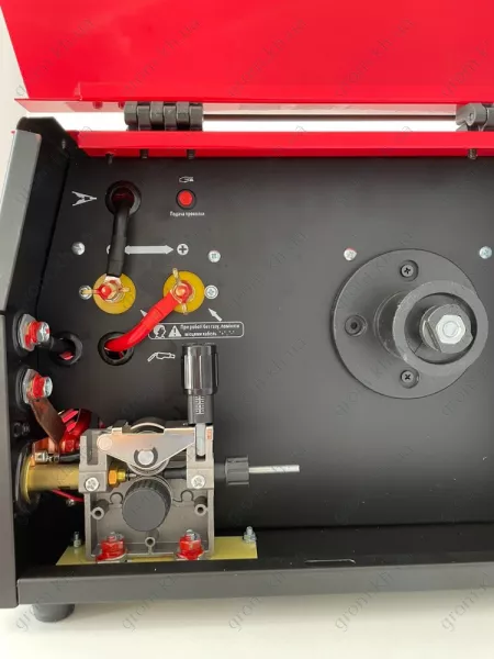 На корпусе размещены регуляторы силы тока, и скорости выхода проволоки, а также переключатель режимов MIG/MMA. Данную модель полуавтомата используют для соединения, обрезки и скрепления металлических изделий и конструкций. Агрегат является безопасным для подсоединения к бытовой розетке, поэтому его часто используют для сварки в гараже или частном доме. Питание агрегата - однофазная сеть 220В. Прибор имеет небольшой вес и размер, очень удобен для транспортировки. Присутствие таких функций, как мягкий поджиг и незалипание электрода, и делают инструмент универсальным. Для удобства вынесен на боковую панель разъем для включения горелки. Производители гарантируют высокую надежность и долгий срок службы.