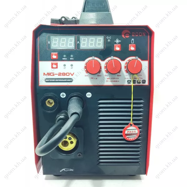 Компактный и портативный Edon MIG-280V весит 12 кг и имеет размеры 450x205x340 мм, что обеспечивает баланс между производительностью и мобильностью. В комплект поставки входят необходимые аксессуары, такие как сварочная муфта, кабели с массовым зажимом и держатель электрода, что гарантирует, что у вас будет все необходимое для бесперебойной сварки.