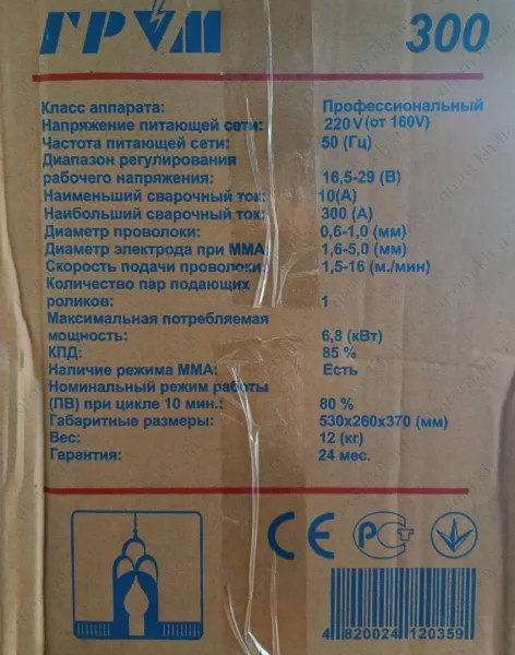 Сварочный полуавтомат ГРОМ MIG/MMA-300 – универсальное оборудование, предназначенное для выполнения несложных технических задач в бытовых условиях. Подходит для мелкой пайки, монтажа металлических конструкций, ремонта автомобильного кузова. Подключается к бытовой сети с напряжением в 220В. Устройство позволяет работать с различными металлами и сплавами. Подойдёт даже тем работникам, которые впервые взяли в руки сварочный аппарат. К преимуществам представленного инструмента справедливо относят: Небольшой вес и малые габариты, позволяющие транспортировать оборудование на отдаленные объекты. Широкий диапазон сварочного тока –от 10 А до 300 А –позволяющий использовать оборудование для выполнения различных задач. Надежную защиту от перепадов напряжения, а также короткого замыкания в сети. Удобную настройку оборудования посредством электронного табло. Предоставление официальной гарантии от производителя. Невысокую цену. Если вы хотите выгодно купить сварочный полуавтомат ГРОМ MIG/MMA-300, обращайтесь в наш интернет-магазин. Мы поможем вам подобрать сварочное оборудование и аксессуары к нему, а также обеспечим его быструю доставку в любой город.