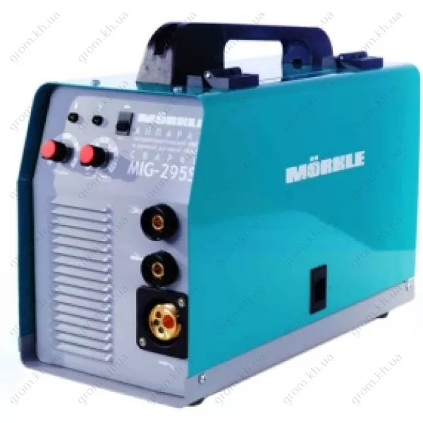 Представляем Вам мощный инверторный сварочный полуавтомат от немецкого производителя Morkle, сделавшего себе хорошее имя в сфере производства высококачественного и профессионального оборудования для сварки. Данная модель именуется MIG 295S, и она прекрасно справится со сваркой защитной газовой среде в режиме полуавтоматике. Надо отметить, что полностью автоматизирована здесь подача сварочного электрода (диаметр до одного миллиметра), за это отвечают наличие газовой горелки и роликового механизма для подачи проволоки.