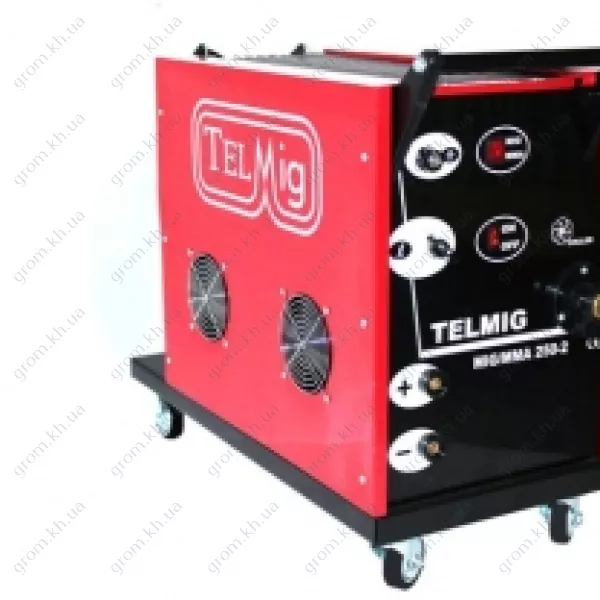 Telmig 250A - это сварочный полуавтомат, используемый как для сварки в полуавтоматическом режиме, так и для сварки штучным покрытым электродом. Также возможно применение аппарата для сварки вольфрамовым электродом в среде аргона. Для этого необходимо дополнительно приобрести аргоновую горелку с контактным поджигом дуги. Это профессиональный аппарат, для промышленных условий работы при номинальном напряжении трехфазной питающей сети 380 В, 50 Гц.