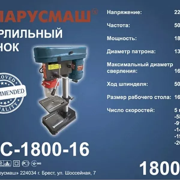 Характеристики Сверлильный станок Беларусмаш БСС-1800-16