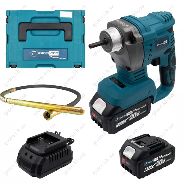 Акумуляторний вібратор для бетону PROFI-TEC DVR1500BL POWERLine (1×PT2040EP (4.0 Ач), зарядний пристрій)