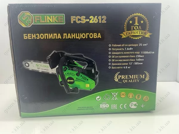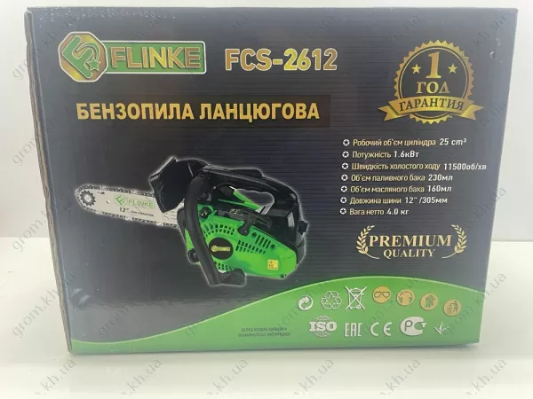 З гарантією 12 місяців, бензопила Flinke FCS-2612 є надійним вибором для тих, хто шукає якісний та ефективний інструмент для робіт з обробки деревини.