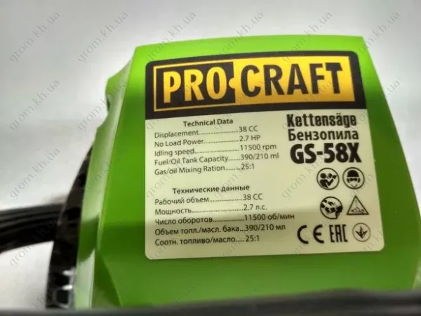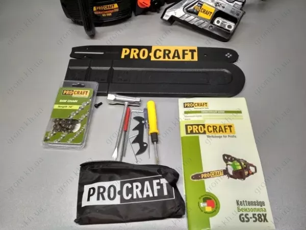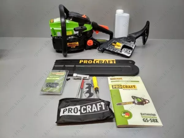 • Бензопила Procraft GS-58X Пиляльний ланцюг Шина Захисний кожух Ключ Посібник користувача