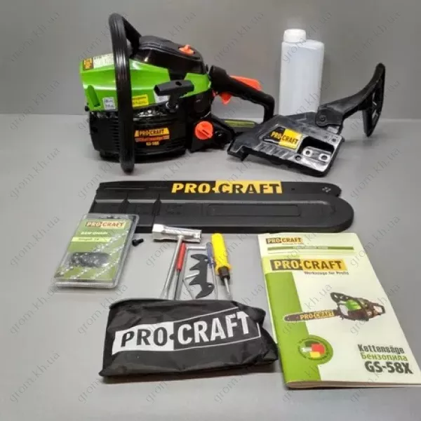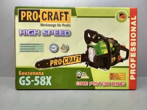 Бензопила Procraft GS-58X (1 шина, 1 ланцюг 40, високооборотна, однокільцева)