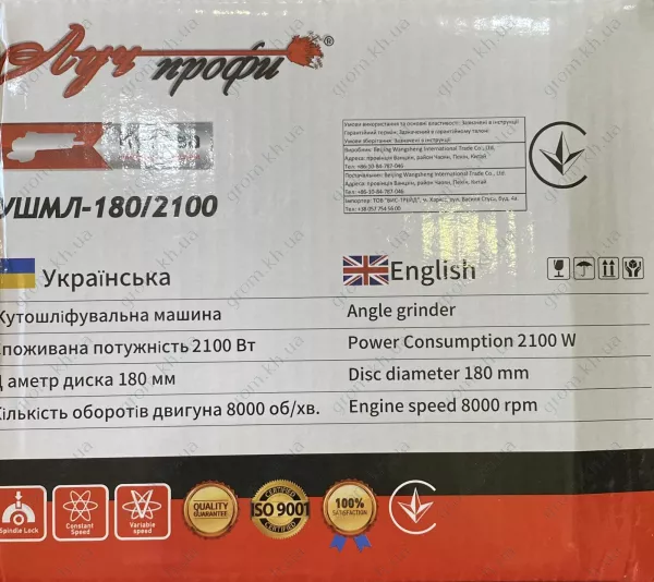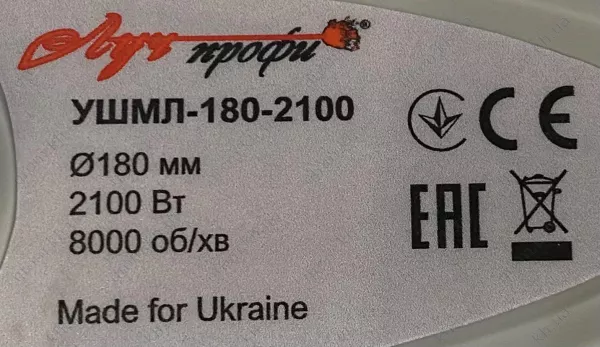 Характеристики Болгарка (кутова шліфувальна машина) ПРОМІНЬ-ПРОФІ УШМЛ-180/2100