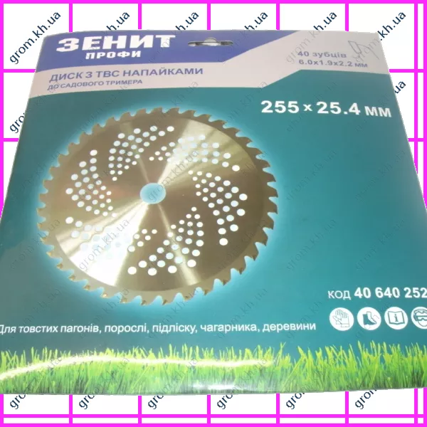 Диск для садового тримера Зеніт 255х25.4 мм 40 ТВС зубців Профі