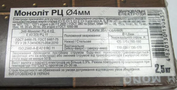 Характеристики Електроди Моноліт АНО-36 4,0 мм 2,5 кг