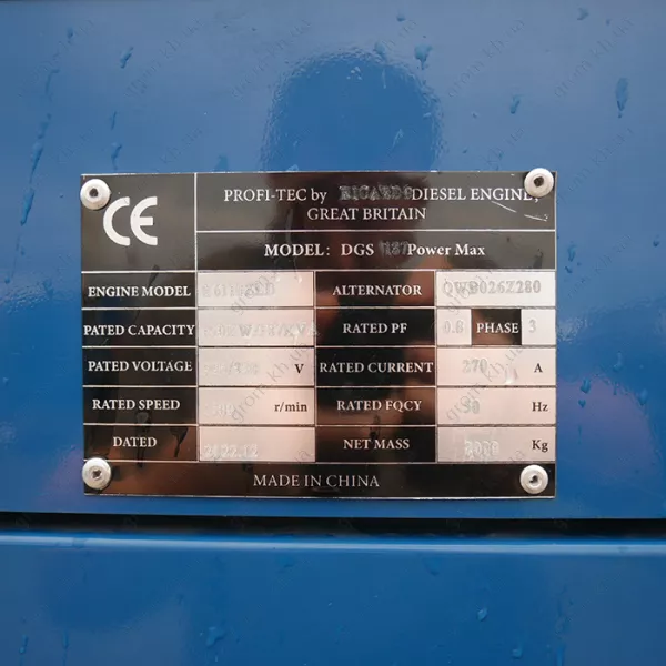 Характеристики Генератор дизельний PROFI-TEC RDSG187-3 Power MAX (187кВА/150кВт, двигун RICARDO, Great Britain)