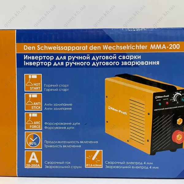 Характеристики Інверторний зварювальний апарат Riber-Profi MMA 200