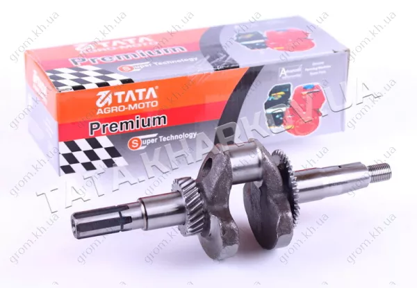 Коленвал у зборі під шліци Ø20 mm - 168F підходить на бензинові двигуни мотоблоків, культиваторів, віброплит та ін, потужністю 6,5/7 к.с. з повітряним охолодженням. Загальна довжина (мм)............................................. .......250 Шестерня вузька (Z)..................................... ..............39 Шестерня широка (Z).............................. ................24 Діаметр шийки шатунної (мм)........................... .30 Шлицева частина: Довжина виступаючої частини (мм).........................50 Діаметр (мм)......... .................................................. ......20 Вага (гр.)...................................... ..................................1760