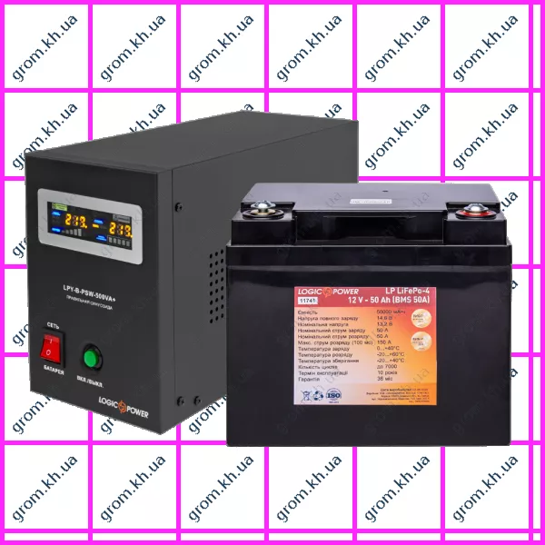 Характеристики Комплект резервного живлення для котла LogicPower ДБЖ B500VA + літієва (Lifepo4) батарея 750W