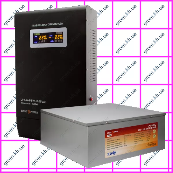 Характеристики Комплект резервного живлення для котла LogicPower ДБЖ W5000VA + літієва (LifePo4) батарея 1160W