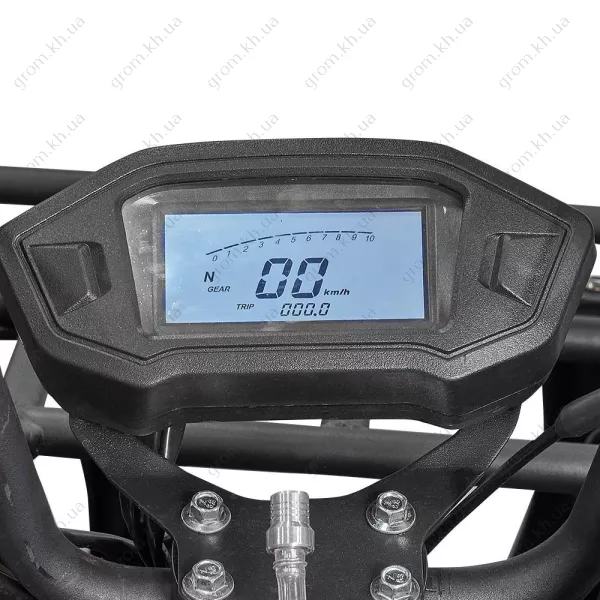 - Комбінована електронна з графічним дисплеєм: спідометр, одометр, облік добового пробігу, тахометр, індикація номера передачі, нейтраль, рівень палива, покажчик заряду АКБ, дальнє світло, повороти, з можливістю вибору кольору підсвічування. Габаритні вогні та покажчики поворотів [на гнучких кріпленнях] з лампами розжарювання. Дві фари дальній / ближній